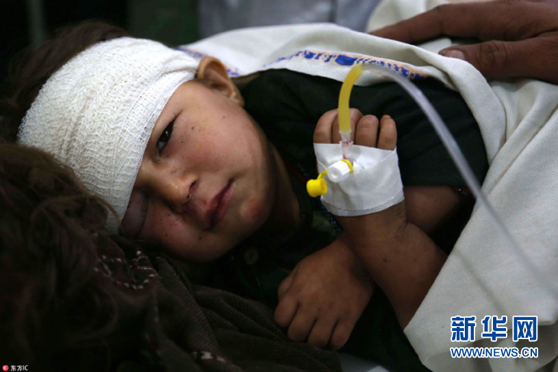 當?shù)貢r間2018年4月20日,阿富汗賈拉拉巴德,受傷的兒童在醫(yī)院接受治療。4月19日,當?shù)匕l(fā)生爆炸事故,致至少5名平民死亡,14人受傷。(圖片來源:東方IC)