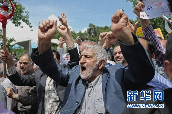 在當(dāng)天的示威活動(dòng)中,伊朗民眾手持“維護(hù)伊核協(xié)議、維護(hù)地區(qū)和平”和“伊朗不懼外來威脅”等標(biāo)語并高呼口號(hào)。