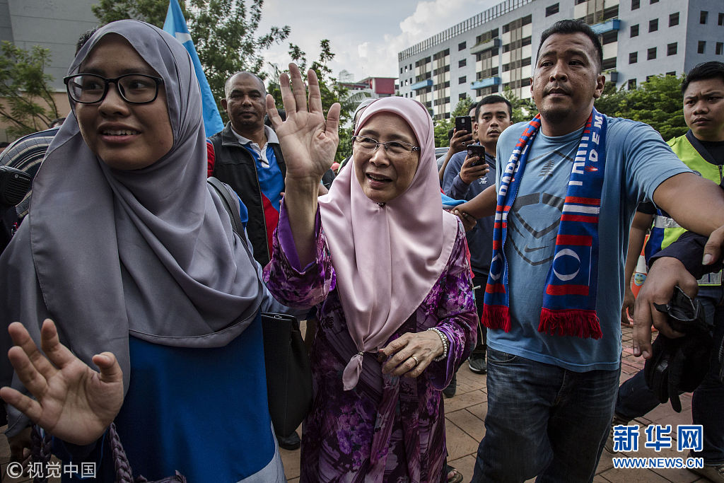 當?shù)貢r間2018年5月11日,馬來西亞吉隆坡,馬來西亞前副總理安瓦爾的夫人Wan Azizah探視獄中的丈夫。馬來西亞新當選總理馬哈蒂爾表示,最高元首已經(jīng)同意特赦前副總理安瓦爾。