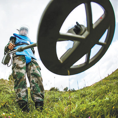 中國維和部隊(duì)軍人在黎巴嫩南部進(jìn)行清排探測作業(yè)。資料照片(新華社發(fā))
