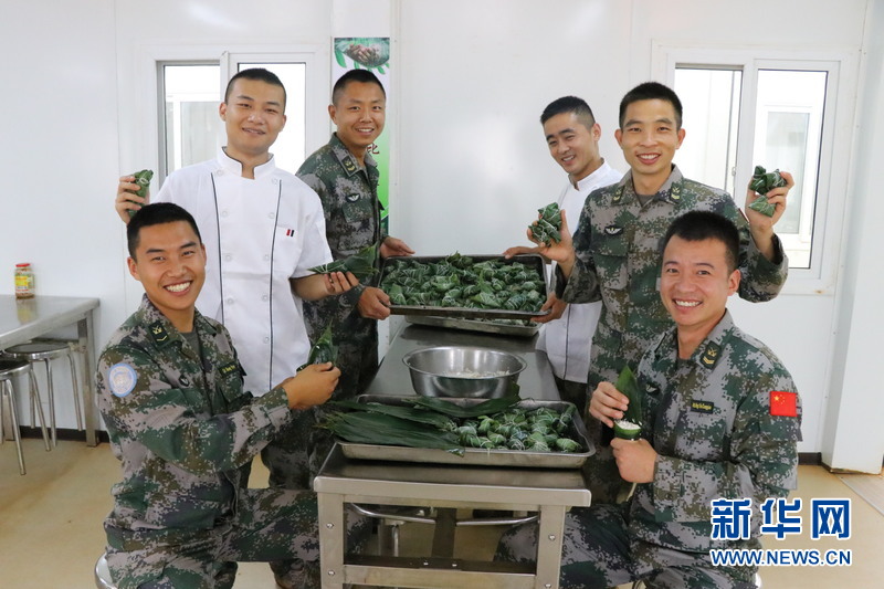 “官兵們?cè)谶h(yuǎn)離祖國(guó)和親人的異國(guó)他鄉(xiāng)執(zhí)行維和任務(wù),在端午節(jié)能夠吃到粽子是官兵們的共同心愿?!贝妒掳嚅L(zhǎng)彭照陽一邊包著粽子,一邊欣喜地對(duì)記者說。