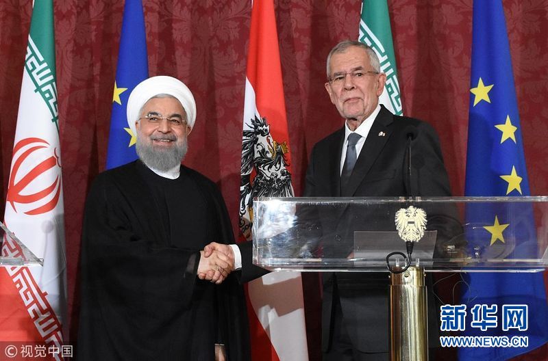 2018年7月4日,奧地利維也納,伊朗總統(tǒng)魯哈尼抵達奧地利進行訪問,會晤奧地利總統(tǒng)范德貝倫。伊朗總統(tǒng)魯哈尼2日出發(fā)前往瑞士和奧地利訪問。他這次西歐行將重點討論伊朗核問題全面協(xié)議。(圖片來源:視覺中國)