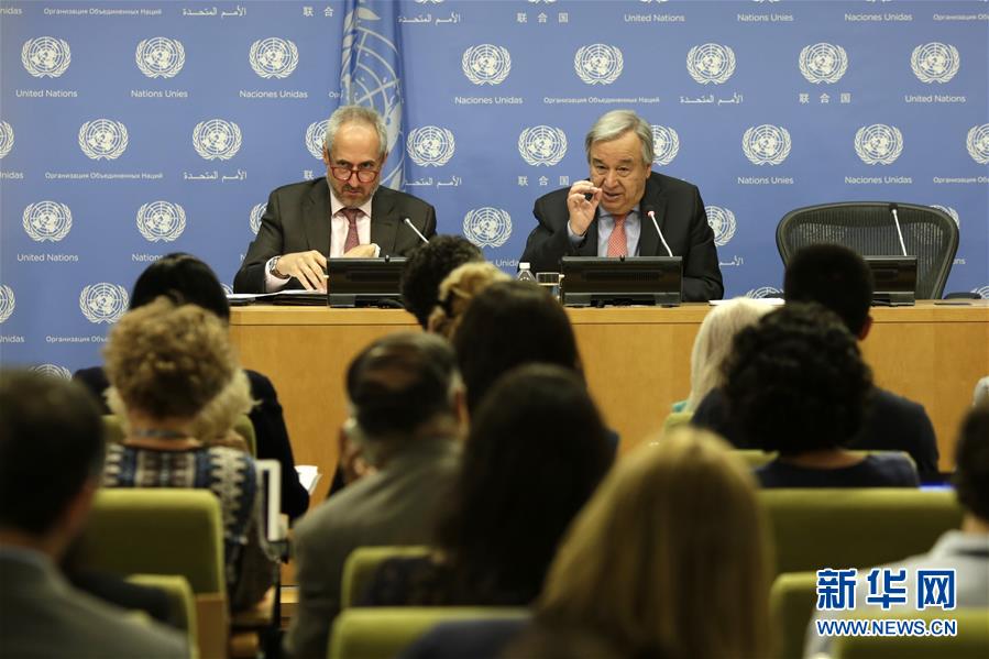 7月12日,在位于紐約的聯(lián)合國總部,聯(lián)合國秘書長古特雷斯(右)出席記者招待會。聯(lián)合國秘書長古特雷斯12日舉行記者招待會,強(qiáng)調(diào)多邊主義和基于規(guī)則的國際關(guān)系對于應(yīng)對全球挑戰(zhàn)的重要性。新華社記者 李木子 攝