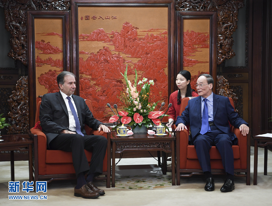 7月16日,國家副主席王岐山在北京中南海會見由黨主席斯齊亞沃尼率領(lǐng)的阿根廷共和國方案黨干部考察團。 新華社記者 張領(lǐng) 攝