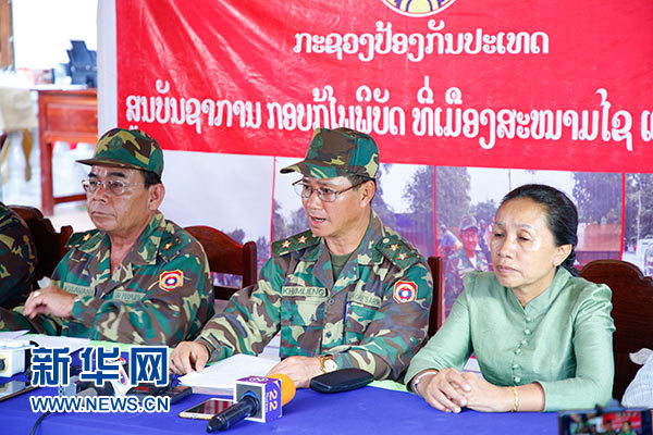 7月28日,老撾人民軍總參謀部副總參謀長、潰壩事故救援總指揮坎良·烏塔凱山(中)在災(zāi)區(qū)薩南賽縣舉行的救援情況發(fā)布會上說,截至當(dāng)晚,潰壩事故的救援力量共發(fā)現(xiàn)8具遇難者遺體,仍有123人生死不明。新華社發(fā)