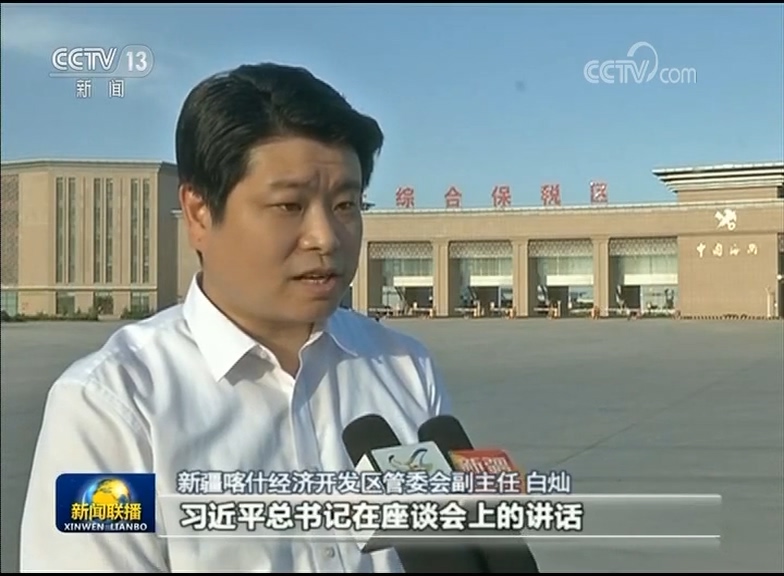 新疆喀什經(jīng)濟(jì)開發(fā)區(qū)管委會(huì)副主任 白燦:習(xí)近平總書記在座談會(huì)上的講話,為我們做好下一階段“一帶一路”工作提供了根本的遵循。我們將和周邊沿線國(guó)家按照“共商、共建、共享”的原則,共同推動(dòng)跨國(guó)的基礎(chǔ)設(shè)施建設(shè)的互聯(lián)互通。