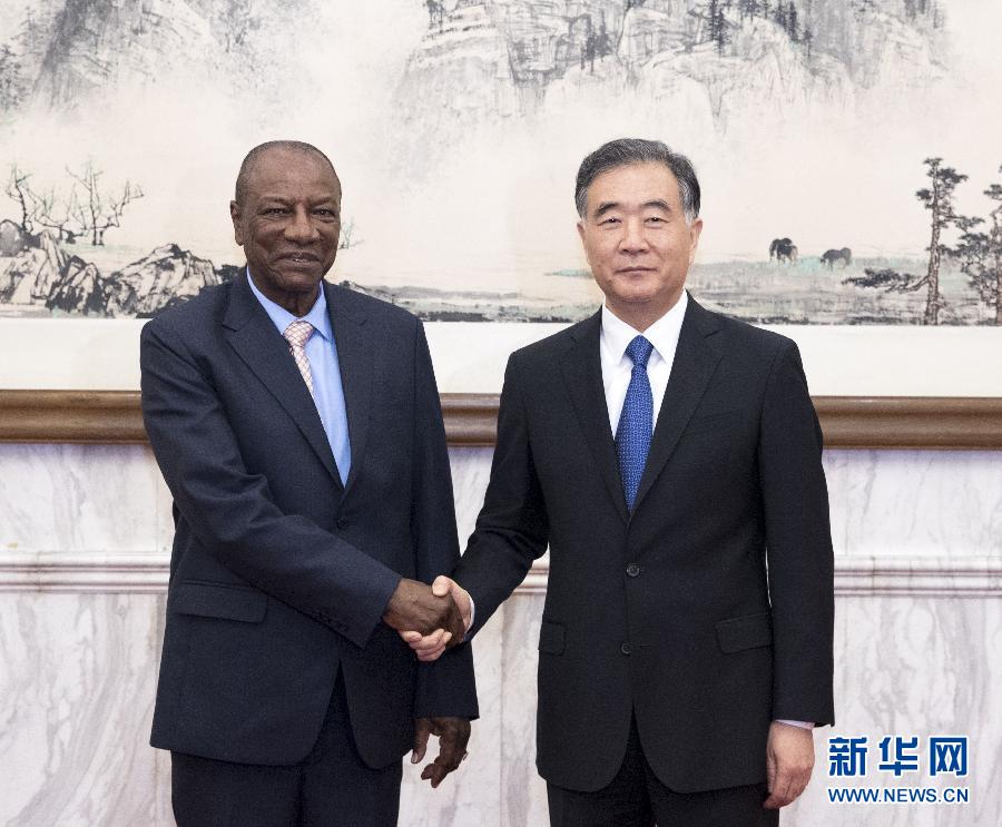 9月1日,全國政協(xié)主席汪洋在北京釣魚臺(tái)國賓館會(huì)見幾內(nèi)亞總統(tǒng)孔戴。 新華社記者王曄攝