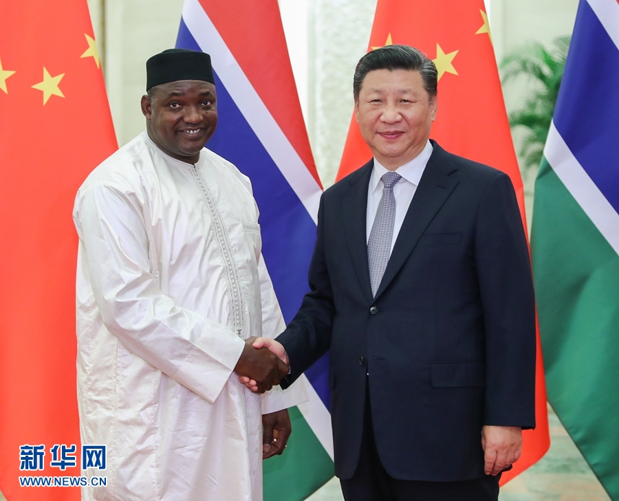習(xí)近平歡迎岡比亞總統(tǒng)首次出席中非合作論壇會議,指出這對中岡關(guān)系、中非關(guān)系、論壇建設(shè)均具有重要意義。習(xí)近平強(qiáng)調(diào),中岡復(fù)交2年多來,雙方友好合作全面、順利推進(jìn),雙邊關(guān)系發(fā)展得很好、很快,中方對兩國關(guān)系發(fā)展取得的成果感到滿意。中方贊賞總統(tǒng)先生和岡比亞政府堅持一個中國原則,愿同岡方繼續(xù)把握好兩國關(guān)系的大方向,不斷增進(jìn)政治互信,繼續(xù)在涉及彼此核心利益和重大關(guān)切問題上相互堅定支持。中方支持岡比亞政府“建設(shè)新岡比亞”的努力,愿加強(qiáng)務(wù)實合作,擴(kuò)大人文交流。中方支持岡方加強(qiáng)和平安全能力建設(shè)。