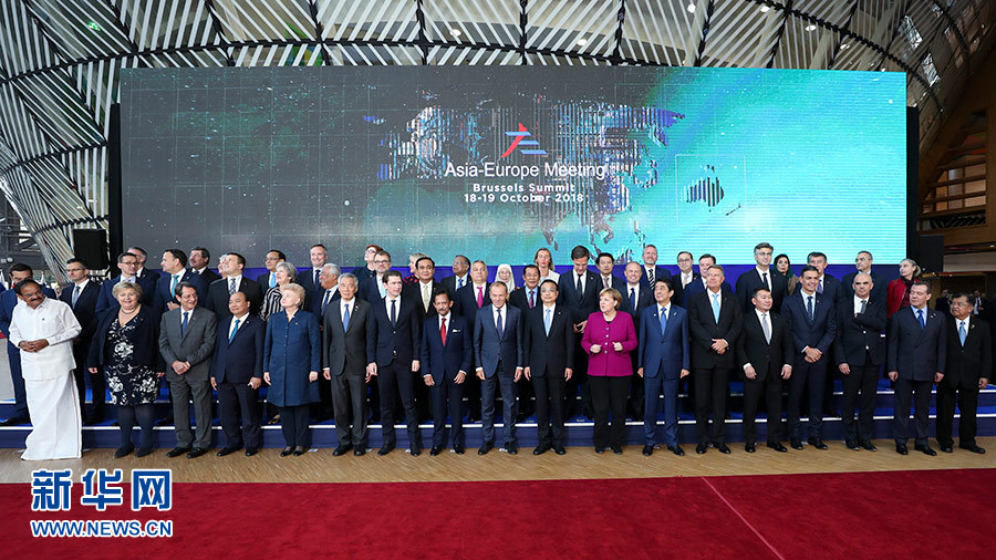 當(dāng)?shù)貢r間10月19日上午,國務(wù)院總理李克強在布魯塞爾出席第十二屆亞歐首腦會議。這是與會領(lǐng)導(dǎo)人合影。 新華社記者 丁海濤 攝