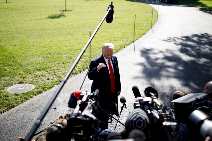 10月22日,在美國首都華盛頓,美國總統(tǒng)特朗普離開白宮前接受記者采訪。新華社發(fā)(沈霆攝)