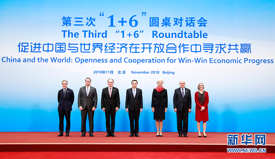 新華社北京11月6日電(記者鄭明達(dá))國(guó)務(wù)院總理李克強(qiáng)6日下午在釣魚(yú)臺(tái)國(guó)賓館同世界銀行行長(zhǎng)金墉、國(guó)際貨幣基金組織總裁拉加德、世界貿(mào)易組織總干事阿澤維多、經(jīng)濟(jì)合作與發(fā)展組織秘書(shū)長(zhǎng)古里亞、金融穩(wěn)定理事會(huì)主席卡尼和國(guó)際勞工組織副總干事格林菲爾德舉行第三次“1+6”圓桌對(duì)話會(huì)。會(huì)議圍繞“促進(jìn)中國(guó)與世界經(jīng)濟(jì)在開(kāi)放合作中尋求共贏”的主題,就中國(guó)經(jīng)濟(jì)和改革開(kāi)放等議題深入交流。