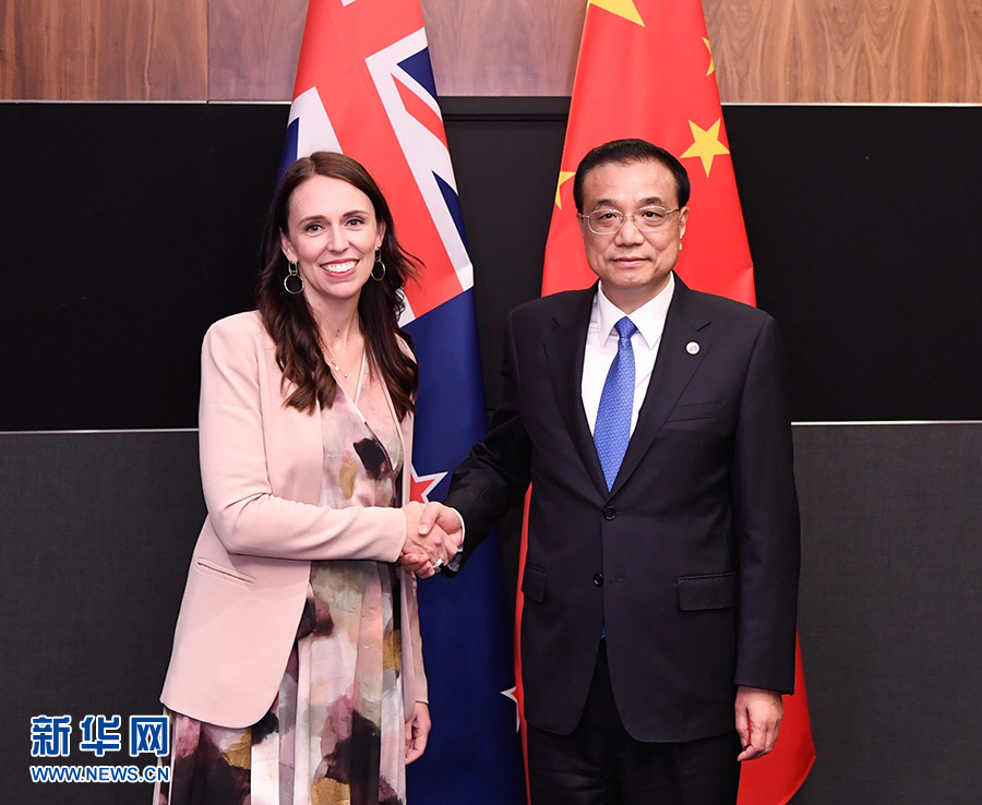 當?shù)貢r間11月14日下午,國務院總理李克強在新加坡會見新西蘭總理阿德恩。 新華社記者 申宏 攝