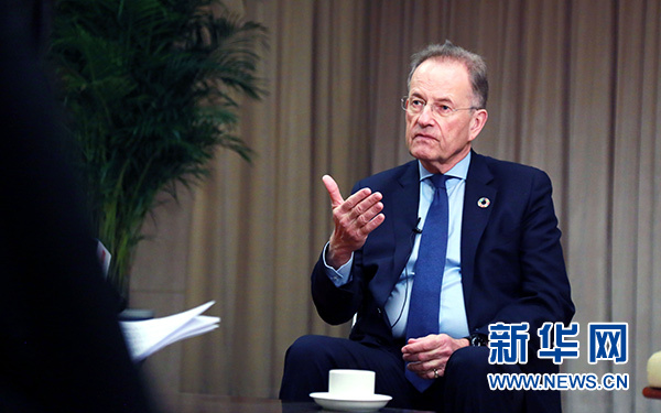聯(lián)合國(guó)日內(nèi)瓦辦事處總干事邁克爾·穆勒在北京接受新華社記者專訪(11月14日攝)。新華社記者 潘旭 攝