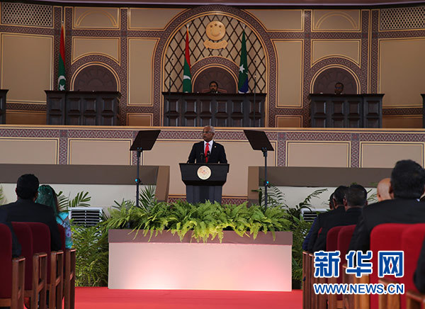 11月17日,在馬爾代夫首都馬累,馬爾代夫新任總統(tǒng)薩利赫在議會特別會議上講話。 新華社記者 朱瑞卿 攝
