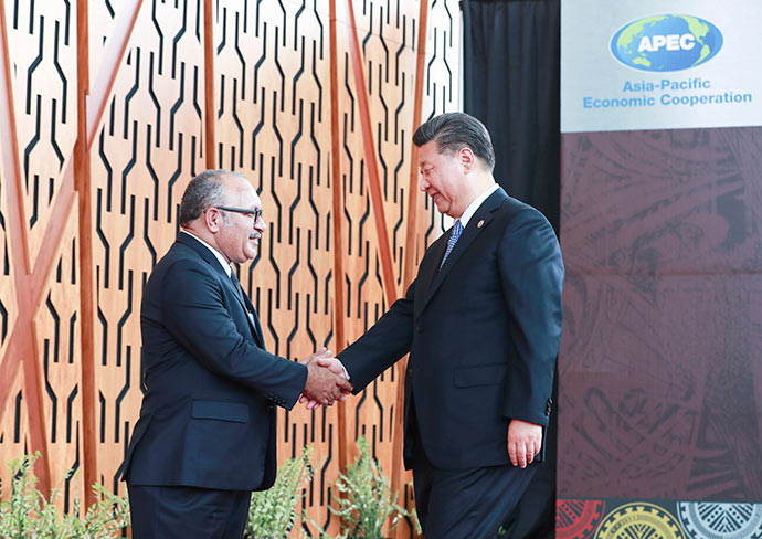 11月17日,國(guó)家主席習(xí)近平應(yīng)邀出席在巴布亞新幾內(nèi)亞莫爾茲比港舉行的亞太經(jīng)合組織工商領(lǐng)導(dǎo)人峰會(huì)并發(fā)表題為《同舟共濟(jì)創(chuàng)造美好未來》的主旨演講。同日,習(xí)近平還出席了亞太經(jīng)合組織領(lǐng)導(dǎo)人同工商咨詢理事會(huì)代表對(duì)話會(huì),受到巴布亞新幾內(nèi)亞總理奧尼爾的熱情迎接。新華社記者 龐興雷 攝