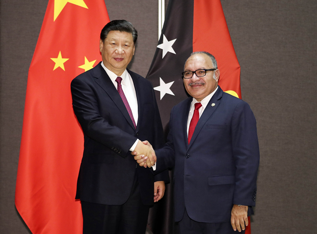 2018年11月16日,國(guó)家主席習(xí)近平在莫爾茲比港同巴布亞新幾內(nèi)亞總理奧尼爾會(huì)談。(新華社記者丁林?jǐn)z)
