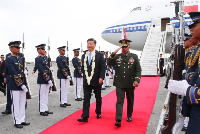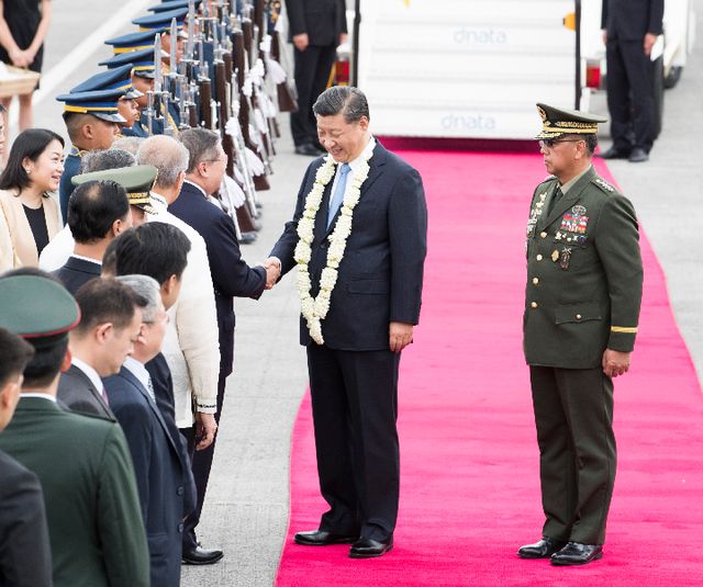 11月20日,國家主席習(xí)近平抵達(dá)馬尼拉,開始對(duì)菲律賓共和國進(jìn)行國事訪問。這是習(xí)近平在機(jī)場(chǎng)受到菲律賓政府高級(jí)官員熱情迎接。新華社記者黃敬文攝