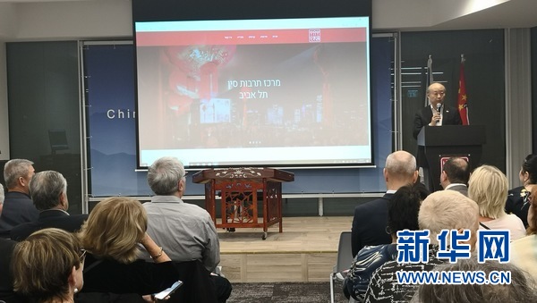 中國(guó)駐以色列大使詹永新在特拉維夫中國(guó)文化中心慶祝成立一周年活動(dòng)上致辭。新華社記者陳文仙攝