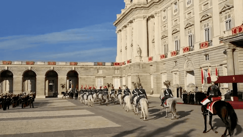 三場(chǎng)宴會(huì)之外,令人印象深刻的便是戰(zhàn)機(jī)護(hù)航和在馬德里王宮武器廣場(chǎng)舉行的盛大歡迎儀式。