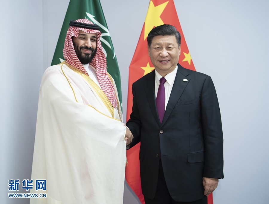 當(dāng)?shù)貢r(shí)間11月30日,國(guó)家主席習(xí)近平在布宜諾斯艾利斯會(huì)見(jiàn)沙特阿拉伯王儲(chǔ)穆罕默德。 新華社記者 李濤 攝