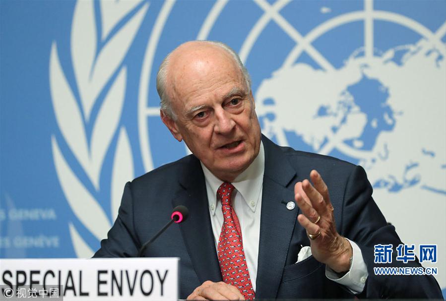 當?shù)貢r間2018年12月18日,瑞士日內(nèi)瓦,聯(lián)合國秘書長敘利亞問題特使德米斯圖拉參加討論組建敘利亞憲法委員會問題的會議并出席新聞發(fā)布會。(圖片來源:視覺中國)