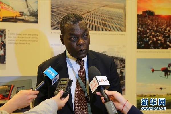 3月4日,在瑞士日內(nèi)瓦聯(lián)合國(guó)萬國(guó)宮,古巴常駐聯(lián)合國(guó)日內(nèi)瓦辦事處和瑞士其他國(guó)際組織代表佩德羅索參觀“中國(guó)新疆人權(quán)事業(yè)發(fā)展進(jìn)步”圖片展后接受采訪。新華社記者 施建國(guó) 攝