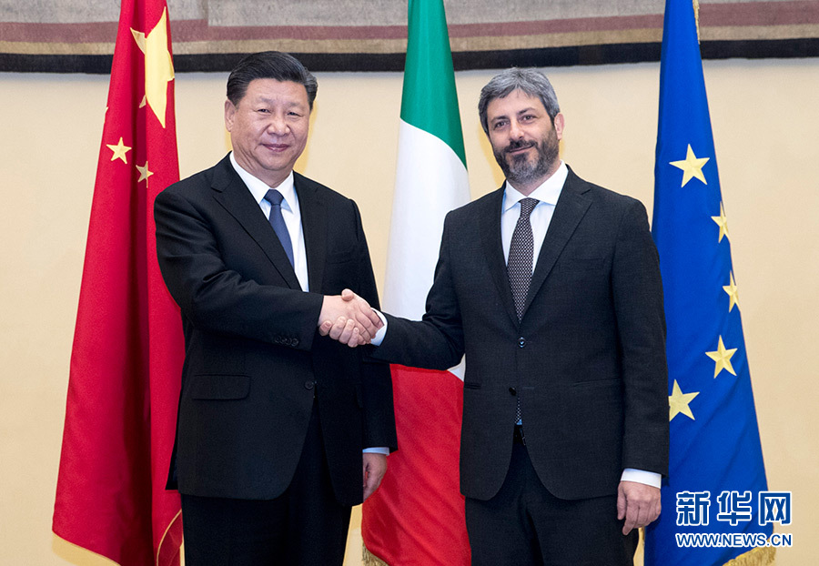 3月22日,國家主席習(xí)近平在羅馬會見意大利眾議長菲科。 新華社記者 王曄 攝