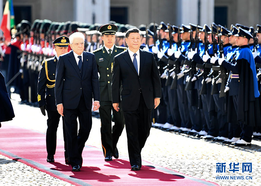 3月22日,國家主席習(xí)近平在羅馬同意大利總統(tǒng)馬塔雷拉舉行會談。會談前,馬塔雷拉總統(tǒng)為習(xí)近平舉行隆重歡迎儀式。(新華社記者謝環(huán)馳攝)