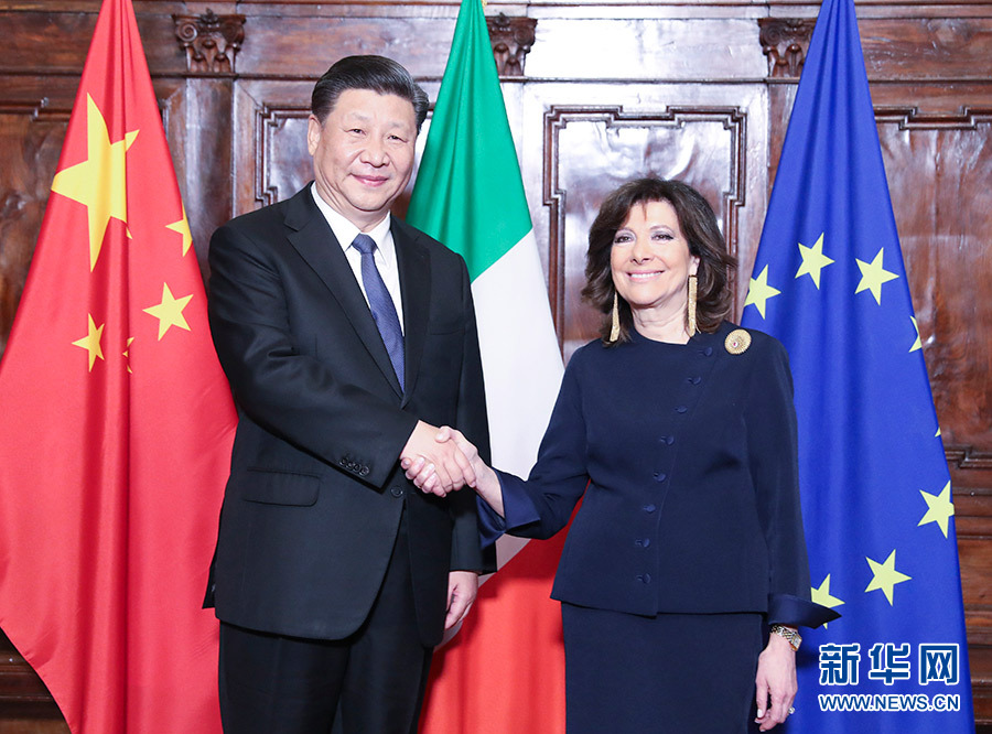 3月22日,國家主席習(xí)近平在羅馬會見意大利眾議長菲科。(新華社記者王曄攝)