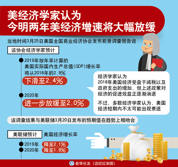 新華社華盛頓3月25日電(記者許緣 鄧仙來)美國全國商業(yè)經(jīng)濟(jì)協(xié)會(huì)25日發(fā)布前景調(diào)查報(bào)告說,該協(xié)會(huì)經(jīng)濟(jì)學(xué)家預(yù)測,主要受全球經(jīng)濟(jì)增長放緩和美國貿(mào)易政策影響,今明兩年美國經(jīng)濟(jì)增速將大幅放緩。