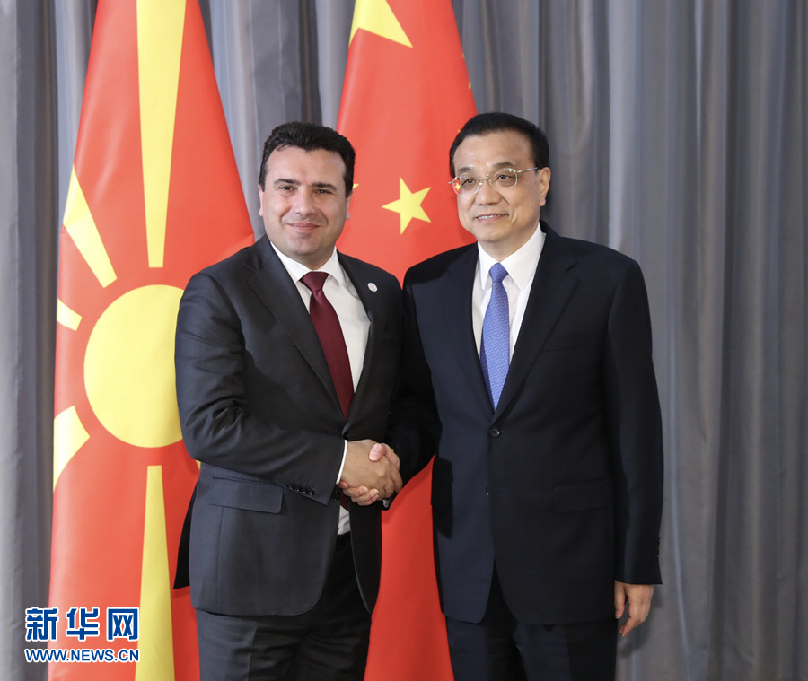 當?shù)貢r間4月12日下午,國務院總理李克強在杜布羅夫尼克會見北馬其頓總理扎埃夫。 新華社記者黃敬文攝