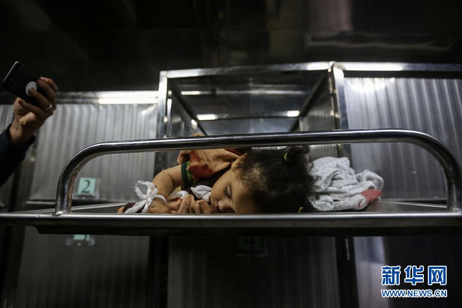5月4日,在加沙城,一名幼兒在以軍轟炸中喪生。新華社發(fā)