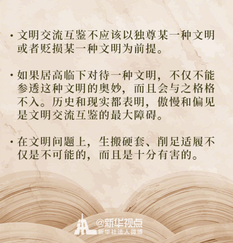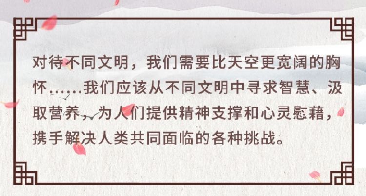 在這次演講中,習(xí)近平主席用生動的語言講明了對待不同文明應(yīng)有的態(tài)度和原則: