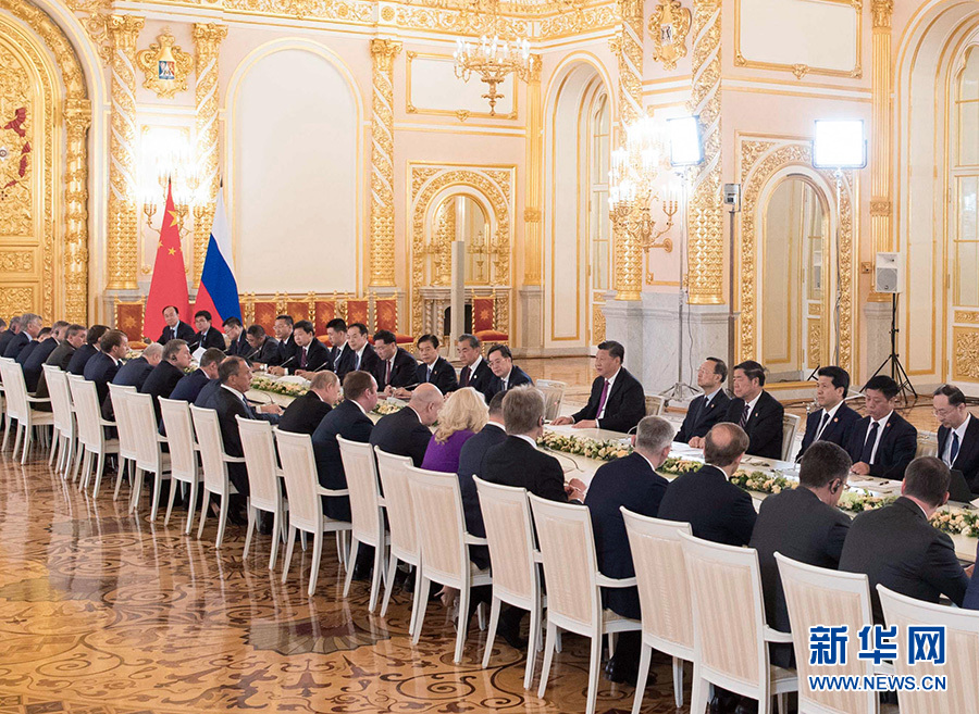 6月5日,國家主席習近平在莫斯科克里姆林宮同俄羅斯總統(tǒng)普京會談。 新華社記者 謝環(huán)馳 攝