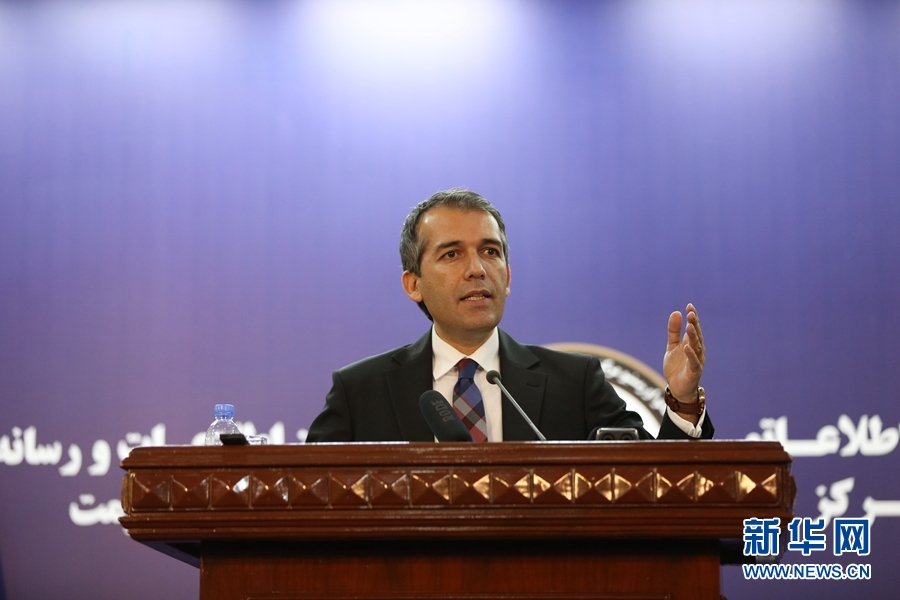 9月8日,在阿富汗喀布爾,阿富汗總統(tǒng)府發(fā)言人西迪克·西迪基在新聞發(fā)布會上講話。新華社發(fā)(拉赫明 攝)
