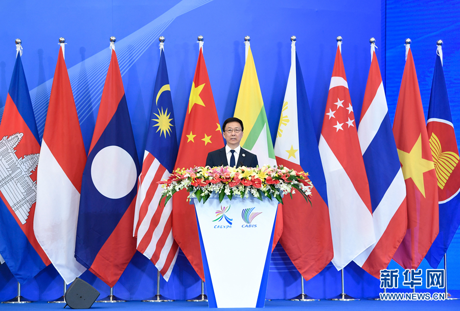 9月21日,第十六屆中國-東盟博覽會(huì)和中國-東盟商務(wù)與投資峰會(huì)在廣西南寧開幕。中共中央政治局常委、國務(wù)院副總理韓正出席開幕式并發(fā)表主旨演講。 新華社記者 申宏 攝