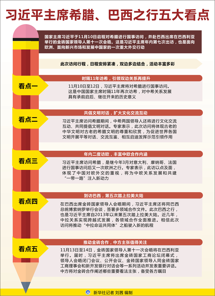 新華社北京11月9日電 題:習(xí)近平主席希臘、巴西之行五大看點