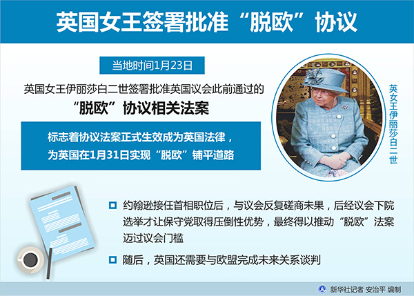 圖表:英國(guó)女王簽署批準(zhǔn)“脫歐”協(xié)議 新華社記者 安治平 編制