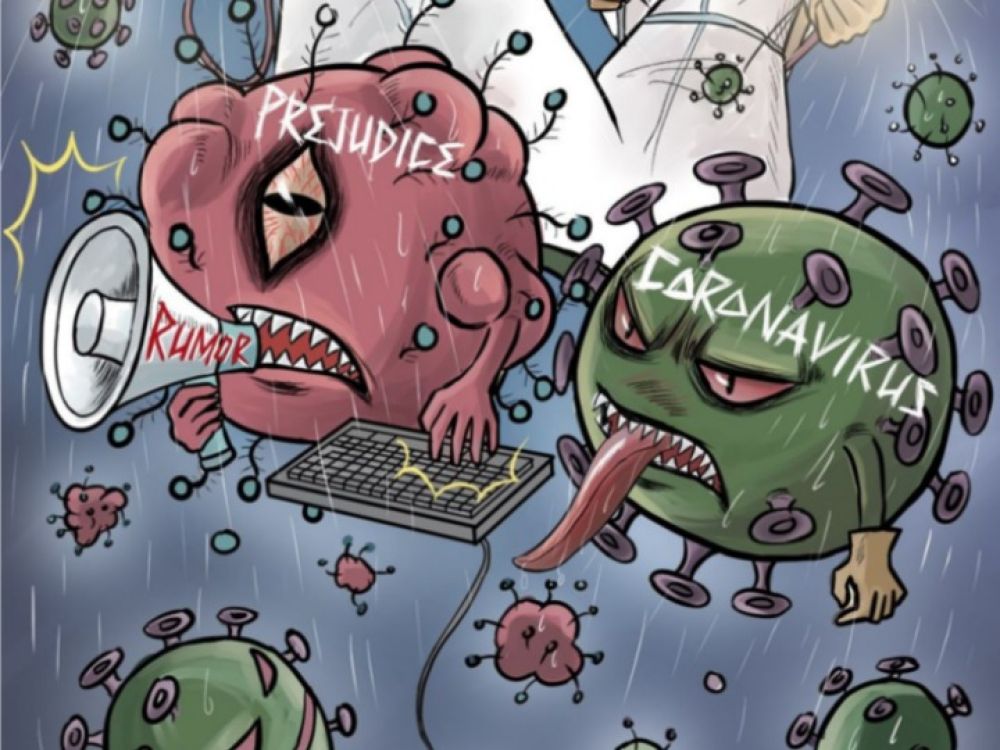 新華社2月29日在海外社交媒體平臺(tái)上播發(fā)以反對(duì)偏見(jiàn)和謠言為主題的“戰(zhàn)疫”漫畫。