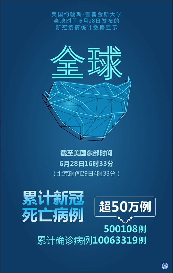 海報(bào):美國(guó)約翰斯·霍普金斯大學(xué):全球新冠死亡病例超過(guò)50萬(wàn)例 新華社記者 曲振東 編制