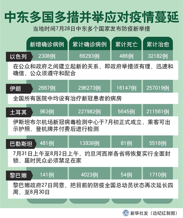 新華社突尼斯7月29日電 綜合新華社駐中東地區(qū)記者報(bào)道:為進(jìn)一步應(yīng)對中東多國持續(xù)蔓延的新冠疫情,同時(shí)防止因宰牲節(jié)人群聚集加劇疫情擴(kuò)散,中東多個(gè)國家28日發(fā)布防疫新舉措。