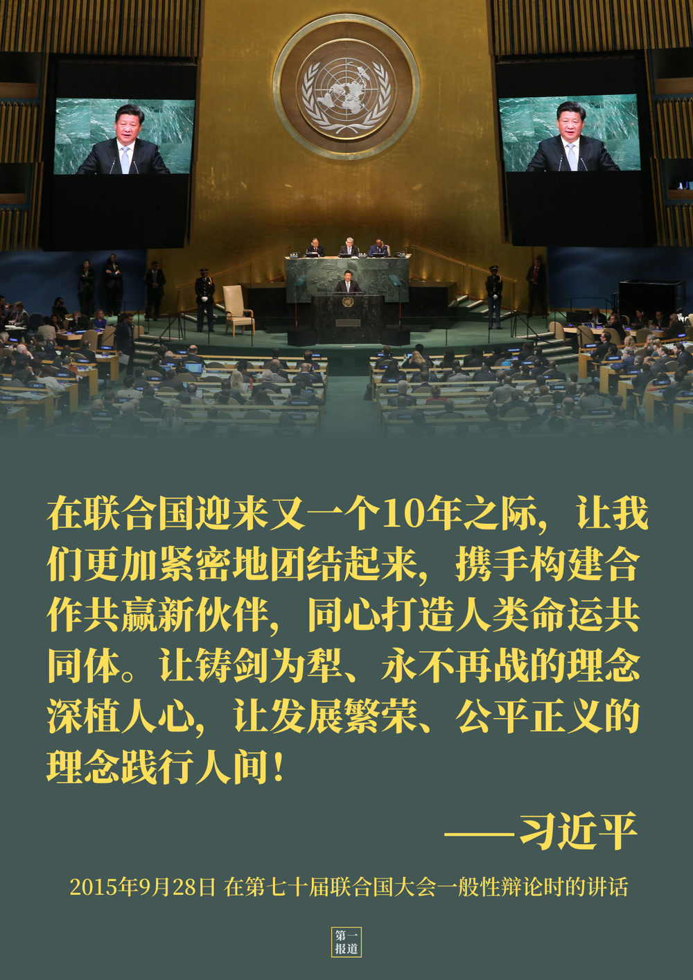 “第一報(bào)道”選取其中3個(gè)鏡頭,帶您重溫5年前習(xí)主席的“聯(lián)合國(guó)時(shí)間”——