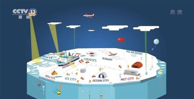 科考隊還花了18天時間,在浮冰上搭建起一座研究基地??瓶妓玫脑O(shè)備都被布放在不同的分區(qū),在“水下機(jī)器人”中心,利用遠(yuǎn)程操作工具,就可以收集海冰之下的觀測數(shù)據(jù),并將這些數(shù)據(jù)傳回“極星”號;在海洋中心,科考隊員在冰層上鉆孔,把觀測設(shè)備降至海冰之下,采集海水樣本;在海冰研究中心,科考隊員們可以研究和觀察海冰和冰上的雪覆蓋。而在大氣中心,科學(xué)家們可以收集研究大氣和空氣成分。