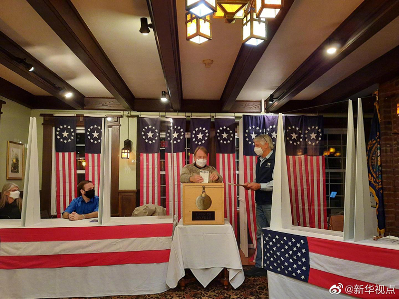 美國(guó)東部時(shí)間3日凌晨,美國(guó)東北部新罕布什爾州部分選民率先赴投票站投票,2020年美國(guó)大選選舉日投票正式開始。