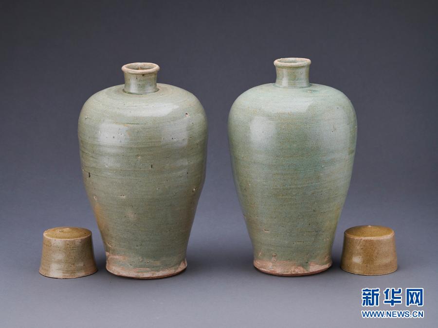 這是從英國(guó)回歸的國(guó)家二級(jí)文物——明代青瓷帶蓋梅瓶(資料照片)。新華社發(fā)