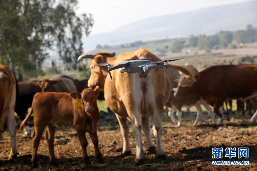 這是11月23日在戈蘭高地拍攝的正在牧牛的無人機(jī)。