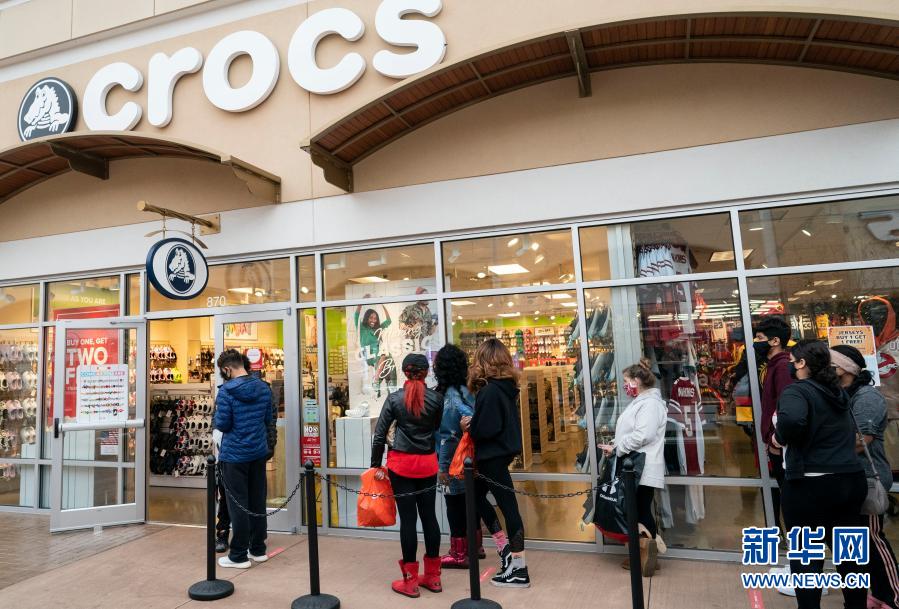 受新冠疫情影響,今年美國“黑色星期五”購物促銷日前往商店購物的人數(shù)較往年減少。