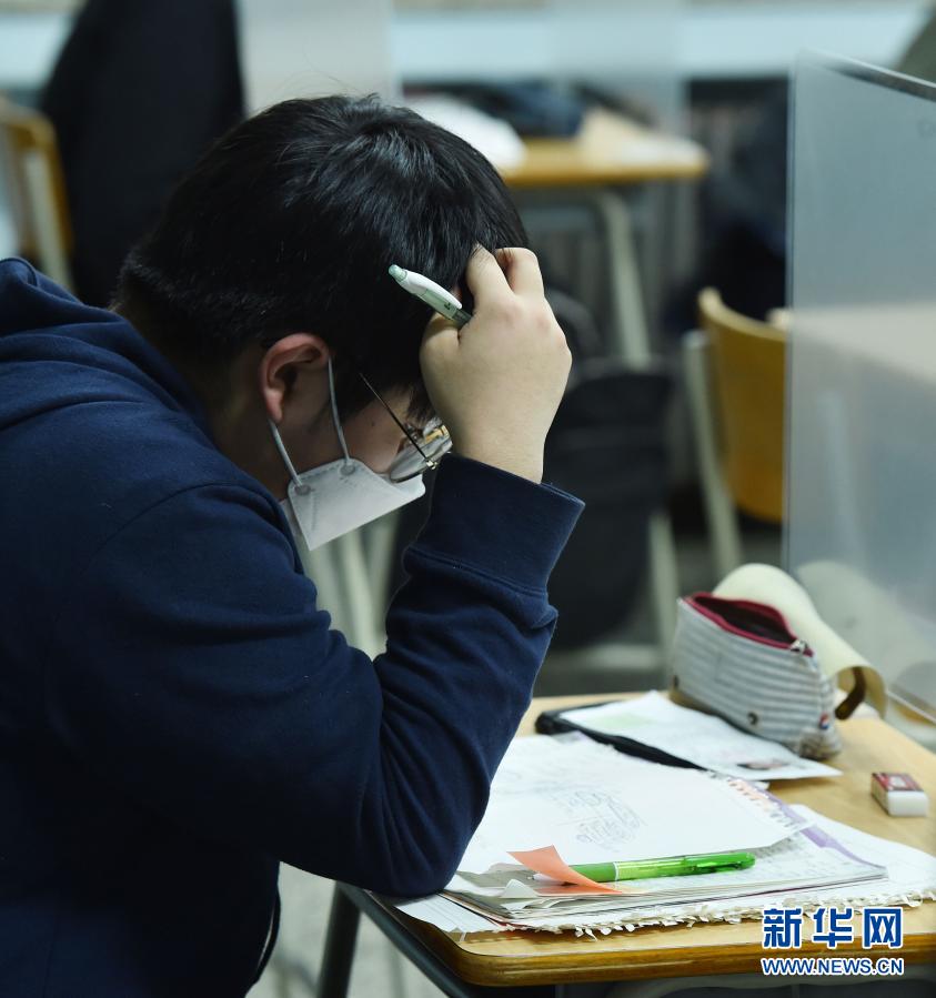 12月3日,在韓國(guó)京畿道城南市,一名考生準(zhǔn)備參加考試。新華社發(fā)(李相浩 攝)