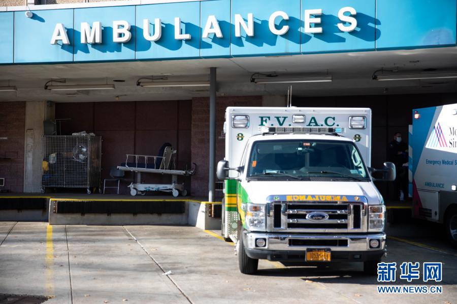 12月3日,在美國紐約,救護車停在一家醫(yī)院的急診室外。新華社發(fā)(郭克 攝)