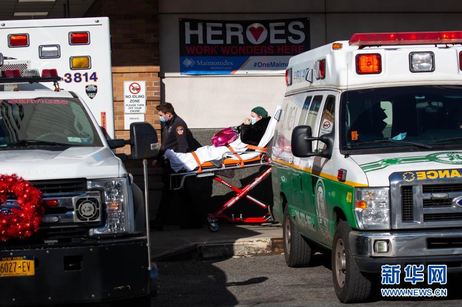 12月3日,在美國紐約,工作人員運送一名患者。新華社發(fā)(郭克 攝)